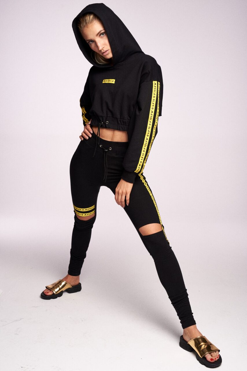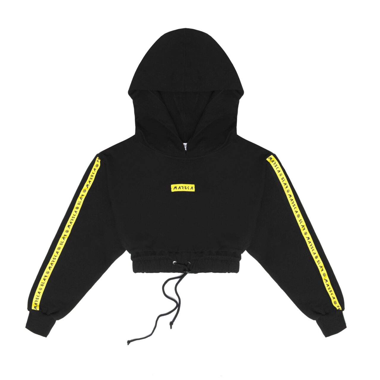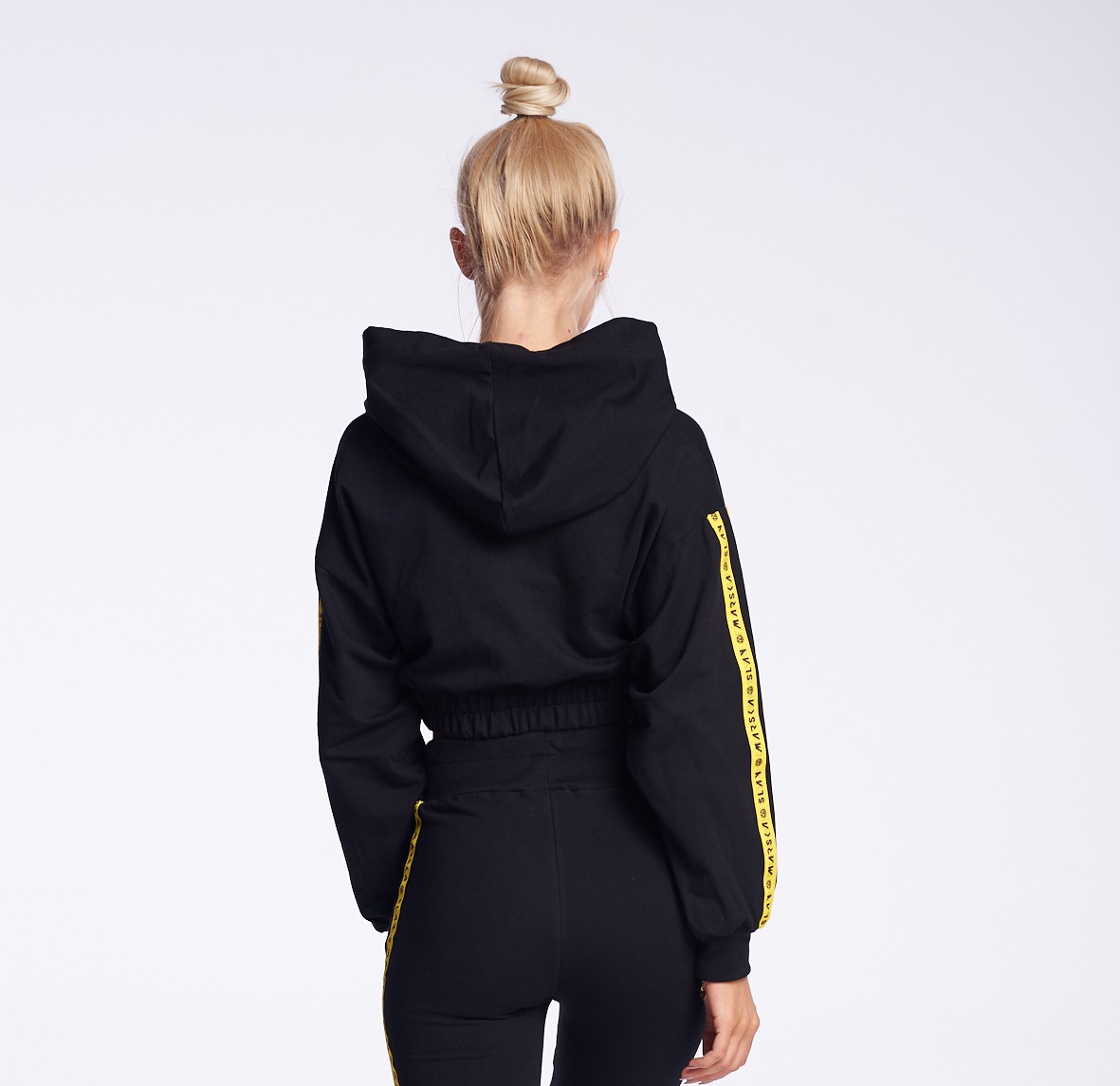 Krótka dresowa bluza z kapturem w kolorze czarnym.