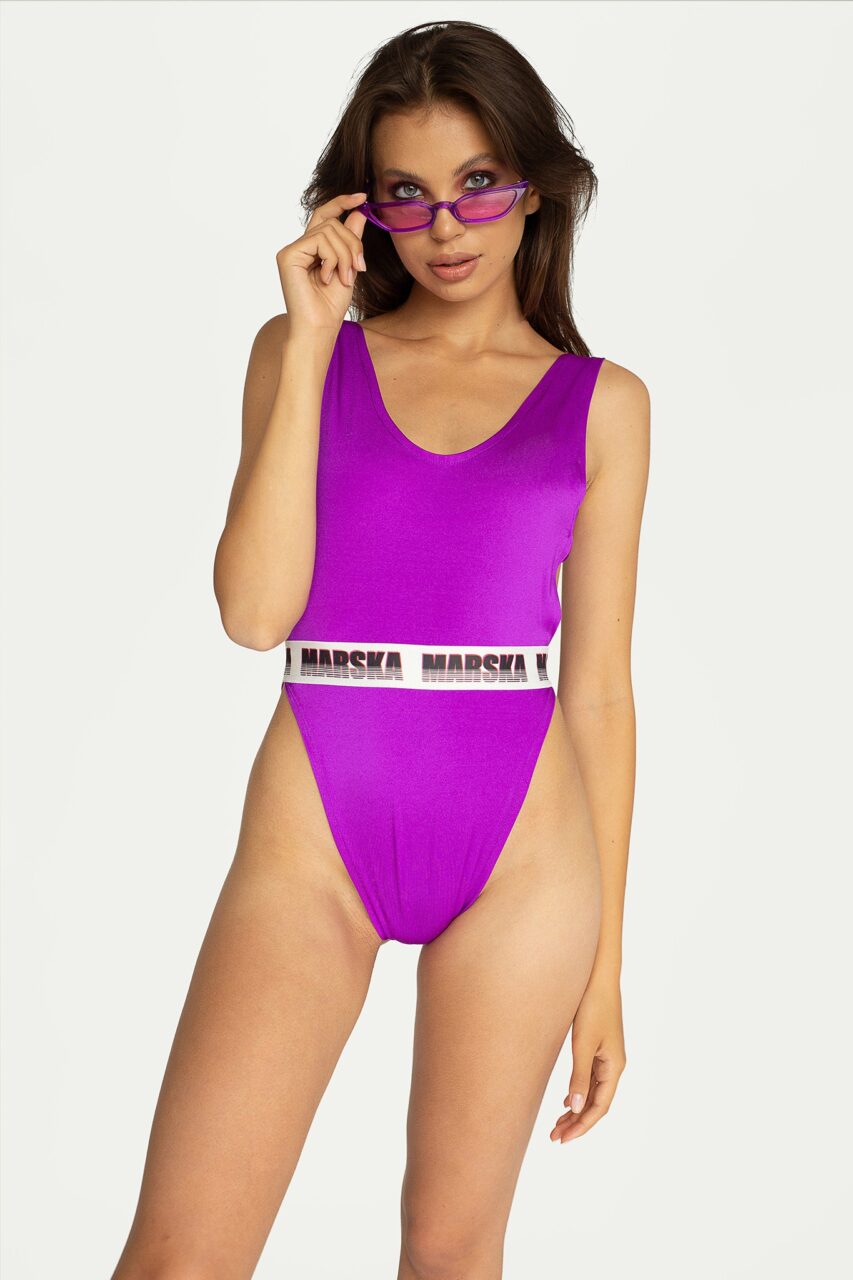 Mega seksowny z  mocno wyciętymi plecami i wysokim stanem majtek podkreśla kobiece kształty .