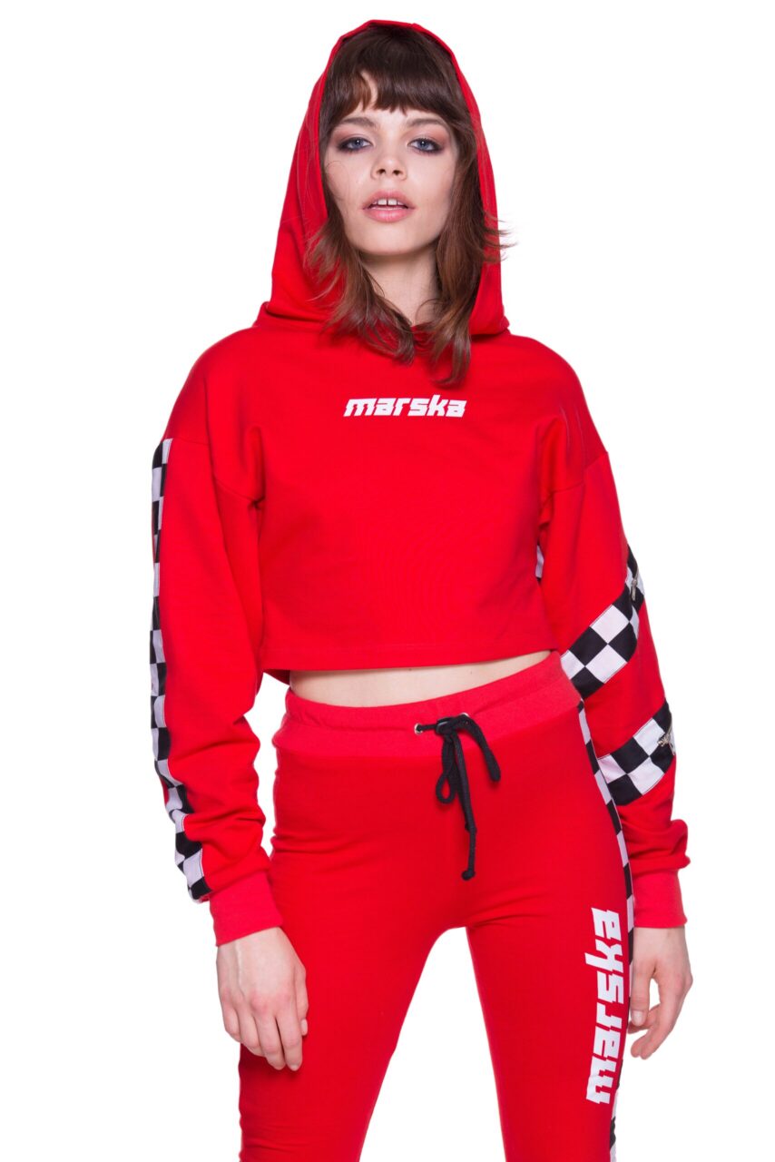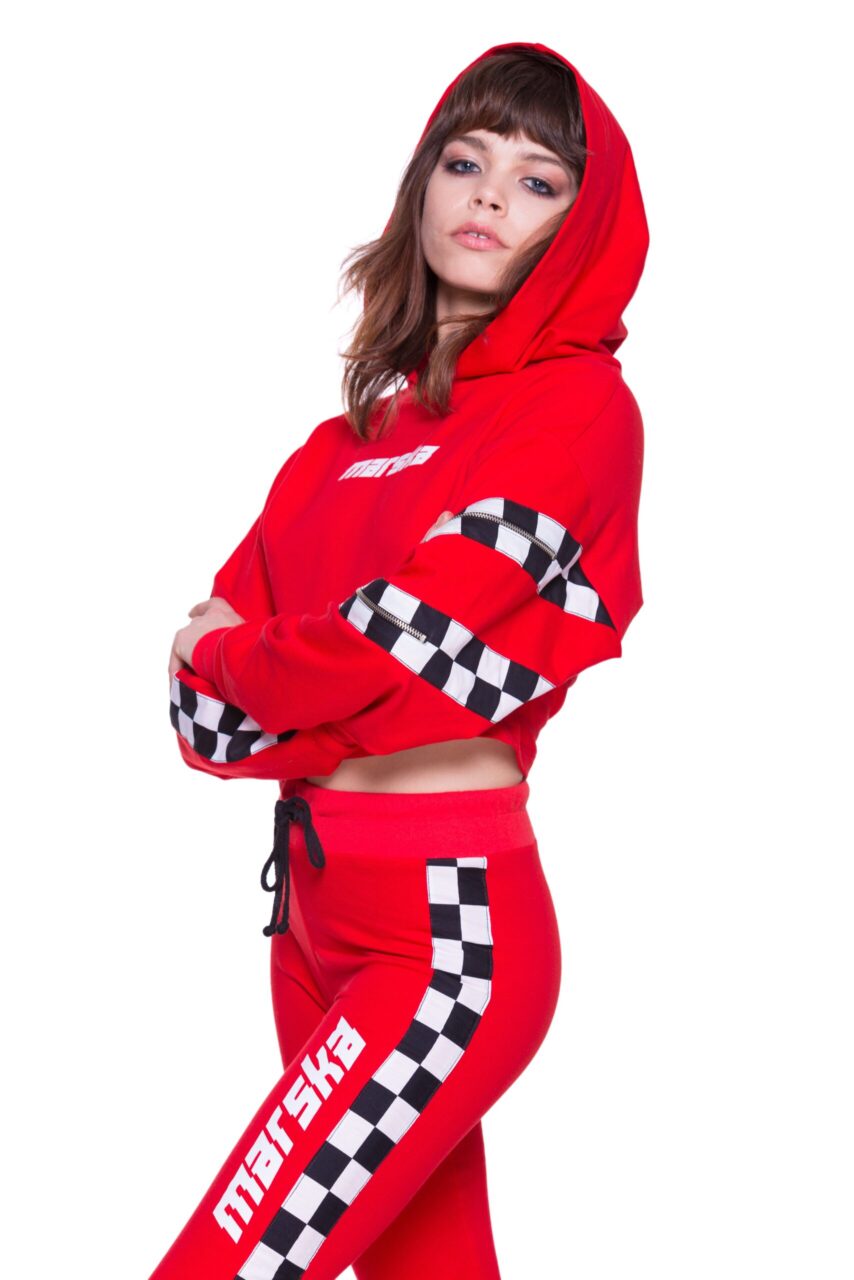 Wysokiej jakości materiał dresowy polskiej produkcji.