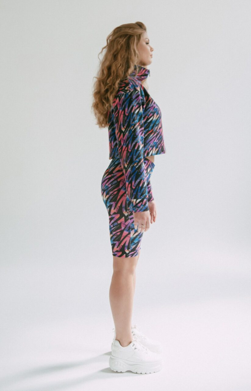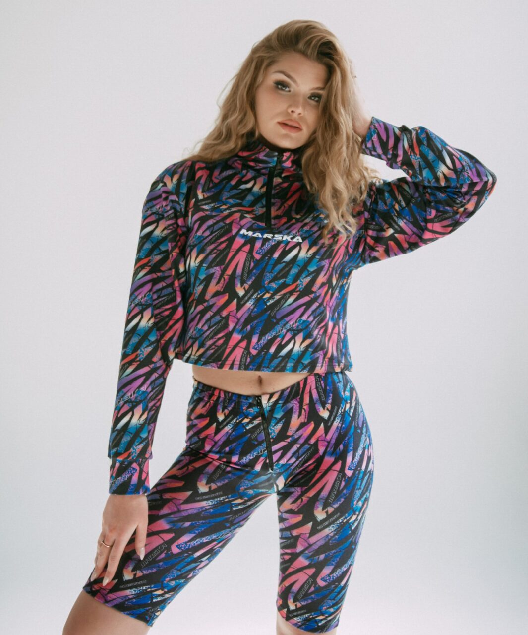 Retro bluza w multikolorze swym krojem i materiałem przywołuje lata 90-te.