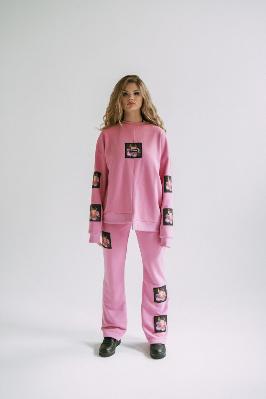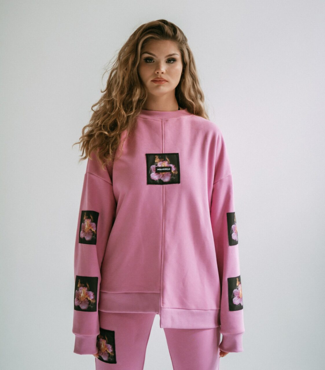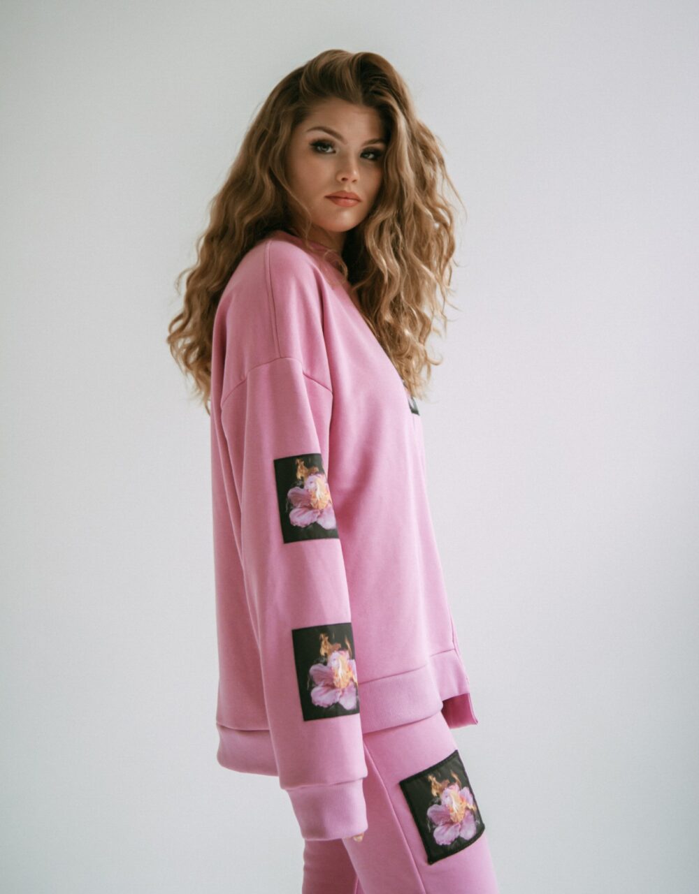 RÓŻOWA BLUZA W PŁONĄCE KWIATY