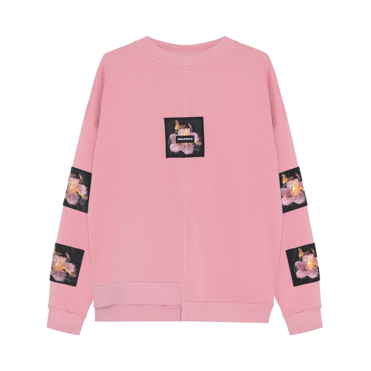 Tak różnorodna jak konstrukcja naszej bluzy. Asymetria u dołu nawiązuje do klimatu vintage, a naszywki z nadrukiem płonącego kwiata nadają jej nowoczesnego stylu. Uszyta z miękkiego materiału, z którego wewnętrzna warstwa jest bardzo przyjemna dla skóry.